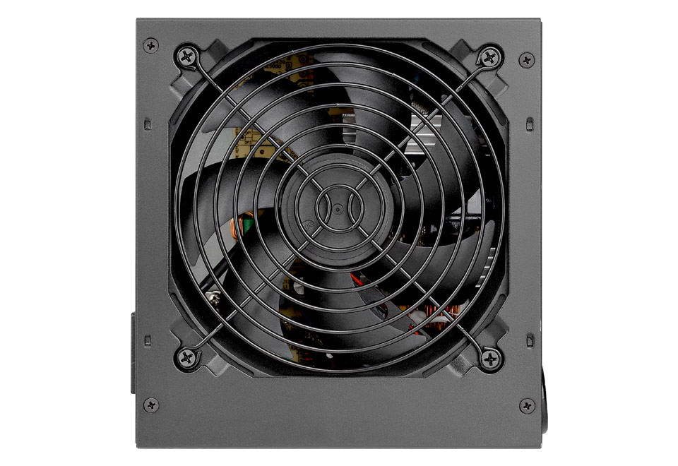 冷却ファンには、最大回転数1,800rpmまで対応する120mm静音ファンを搭載。電源の負荷状況に応じて回転数を制御する「インテリジェントRPMコントロール」に対応しており、低回転でも最適なエアフローを実現し効率的に冷やします。