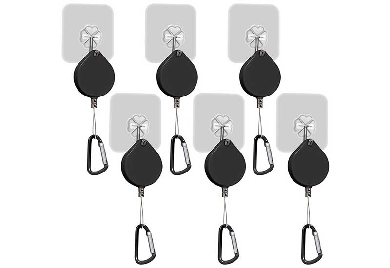 約120mmまで伸びる伸縮自在のワイヤーを備えたカラビナクリップ