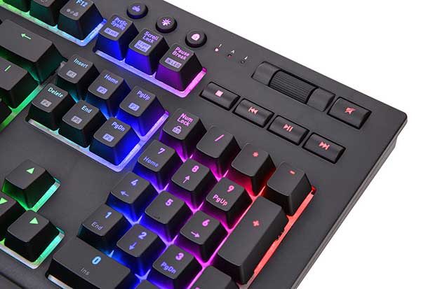 全てのキーにRGBバックライトを装備しており、12種類のライティングエフェクトを搭載。専用ソフトウェアによりカスタマイズが可能となっているほか、PCケースファン「Riing Plus RGB Fan Premium Edition」シリーズをはじめとするThermaltake Plusシリーズ製品との同期に対応しており、システム全体でダイナミックなライティングを楽しむことができます。