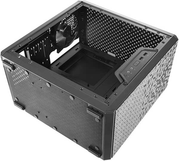 MasterBox Q300Lは、フロントパネルとケース上部に、幾何学模様のマグネット式ダストフィルターを装備したコンパクトなミニタワー型PCケースです。小型ながらも十分な拡張性を備え、妥協のない冷却システムを構築できるほ か、大型のクリアサイドパネルを搭載しており、PCのライトアップを楽しむことができます。