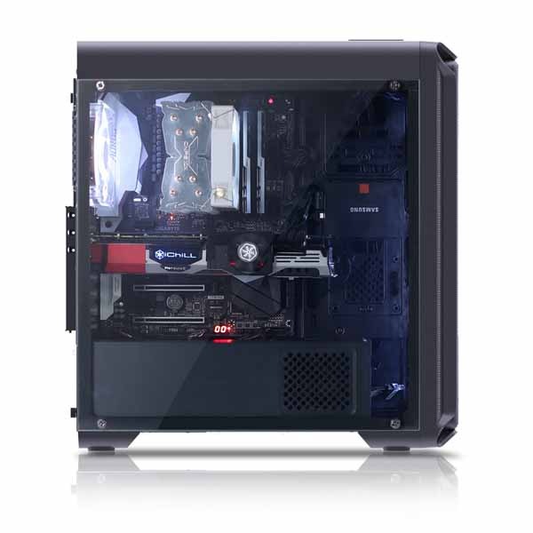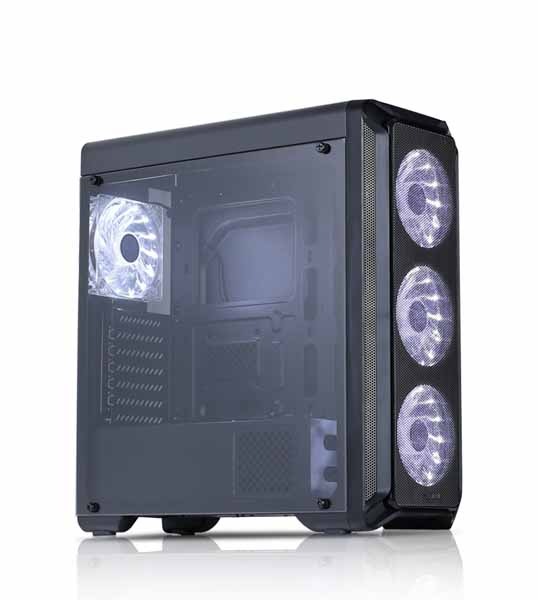 I3は、エアフローを重視したメッシュ加工のフロントパネルと、全面アクリル製のサイドパネルを採用したミドルタワー型PCケースです。ケース前面と背面に、計4基の120mm ホワイトLEDファンを搭載しており、鮮やかなライティングと組み込んだドレスアップパーツがより映えるデザインとなっております。