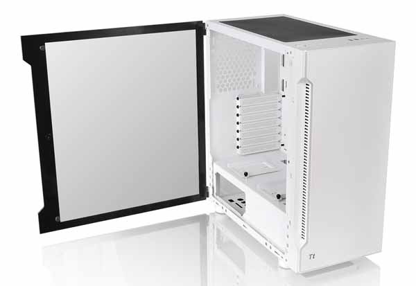 左サイドに、内部パーツへのアクセスを容易にするスイングドアパネルを搭載。4mm厚の強化ガラスを採用することにより、内部パーツのLEDカラーや水冷クーラント液のカラーを自由に組み合わせるなど、自作PCならではの豊かなドレスアップを楽しめるデザインとなっています。