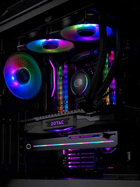 アドレサブルRGB LEDを搭載しており、ASUS、ASRock、GIGABYTE、MSI社製の対応マザーボードとLEDの同期が可能。各マザーボードのLEDコントロールソフトウェアのほか、独自ソフトウェア「MasterPlus+」からライティングをカスタマイズすることができます。