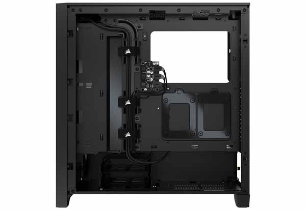 フロントと左サイドの2面に強化ガラスパネルを搭載。統合管理ソフトウェア「iCUE」でコントロール可能な120mm RGBファンを3基標準装備しており、組み込んだドレスアップパーツがより映えるデザインに仕上がっています。