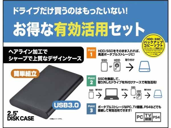 Western Digital製SSDとアルミニウム製2.5インチケースがセットになった「有効活用セット」。