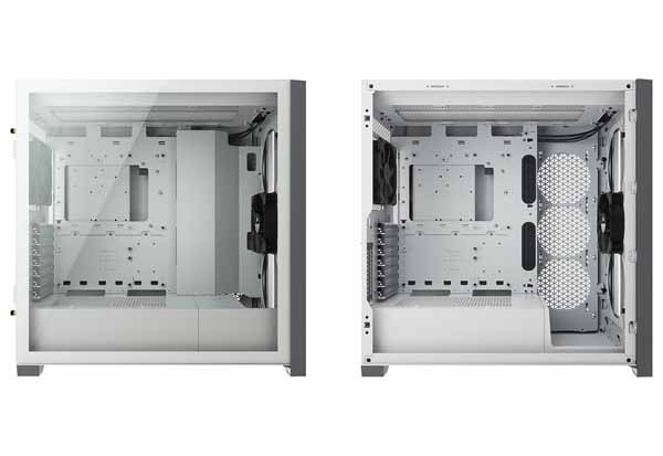 マザーボードベース部の裏側に、広めの配線スペースを確保。ヒンジのドアパネルやケーブルバーを備えており、クリーンな配線でシステムを構築可能な「RapidRouteケーブルマネジメントシステム」を採用しています。