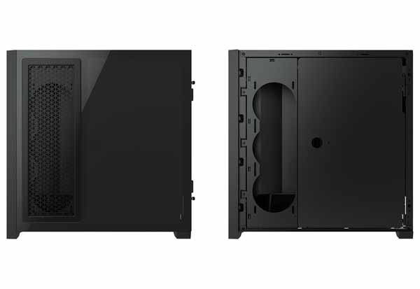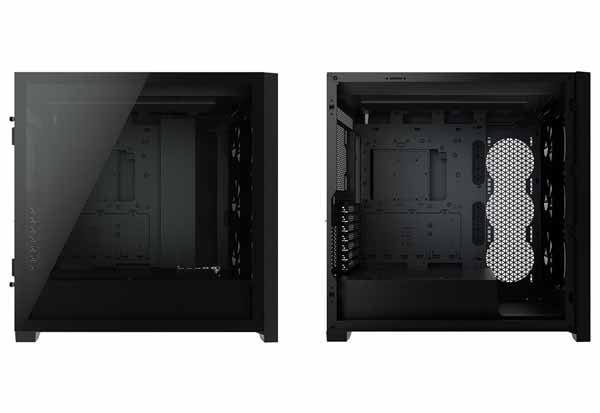 トップ、フロント、両サイドの4面に強化ガラスパネルを搭載。統合管理ソフトウェア「iCUE」でコントロール可能な120mm RGBファンを3基標準装備しており、組み込んだドレスアップパーツがより映えるデザインに仕上がっています。