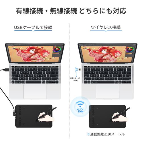無線接続・有線接続どちらにも対応。ワイヤレス接続の場合、ケーブルが無くきれいな環境で作業できます。
