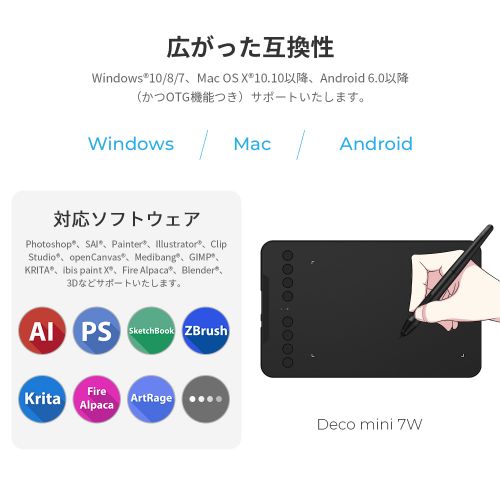 XP-PEN Deco Mini7W ワイヤレス接続対応のペンタブレット|Deco Mini 7W