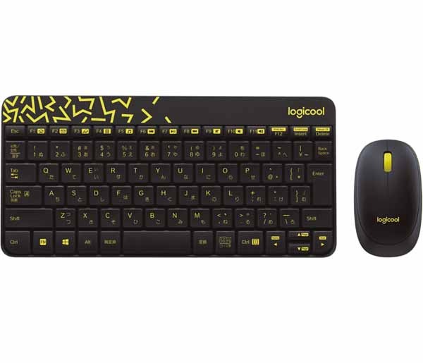 ロジクール ワイヤレスコンボ MK240 NANO ワイヤレスキーボード&マウス ブラック/明るい黄緑|MK240NBC