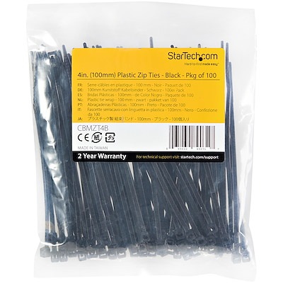 StarTech 結束バンド/ナイロンケーブルタイ/100本入りパック/ブラック/長さ10cm/幅2mm/UL94V-2規格認定品|CBMZT4B