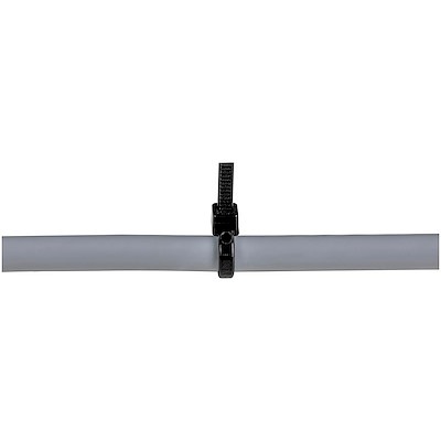 長さ10cmのナイロンタイは、直径22mmまでのケーブル束に対応します。締め付け強度が調整でき、取り付けが簡単にできるベーシックな1本型のデザインです。家庭やオフィスでのLANケーブルや電源コードなどの配線整理に最適です。