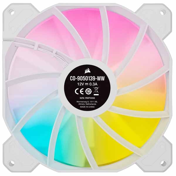 8個のアドレサブルRGB LEDを搭載しており、統合管理ソフトウェア「iCUE」に対応。半透明のファンブレードでLEDの光を拡散し、鮮やかなライティングを楽しめます。