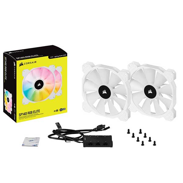 Corsair iCUE SP140 RGB ELITE White with iCUE Lighting Node CORE -Dual Pack- PWMファン ホワイト|CO-9050139-WW