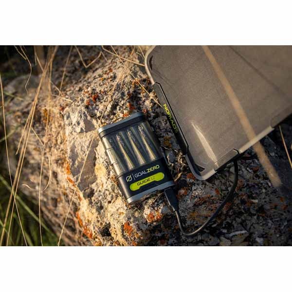 Guide 12+Nomad 5 Solar Panel Kitは、最大出力5Wの小型・軽量ソーラーパネル「Nomad 5 Solar Panel」と、ニッケル水素充電式電池に対応したコンパクトなポータブル充電器「Guide 12」のお得なセットモデルです。