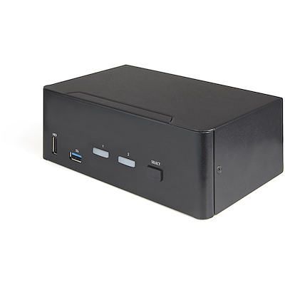・使いやすい設計:コンパクトで頑丈な筐体前面にUSBハブ(USB 3.1/3.2 Gen 1)とアクセスしやすいボタンを統合。接続コンピュータ間でUSBデバイスを共有可能