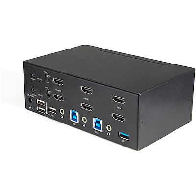 ・技術仕様:2ポート2画面 HDMI 2.0 | 3840 x 2160 | HDCP 2.2 | HDR10対応 | 2ポート USB 3.0ハブ(5Gbps)| 4x USB HID | ホットキー、押しボタン | ステレオアナログ + 7.1ch デジタルオーディオ | EDID & HDCPエミュレーション | OS依存性なし