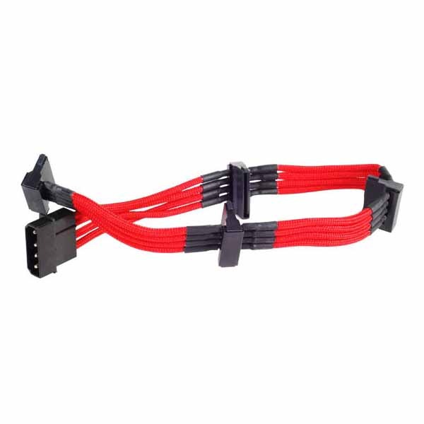 SilverStone PP07-BTSR 1x 4pin to 4x SATAコネクタ PSU汎用延長ケーブル(レッド)|SST-PP07-BTSR
