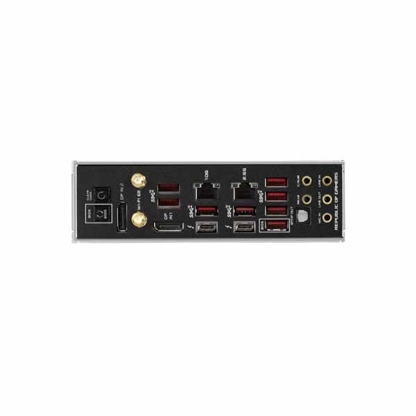 ・包括的な熱設計: VRMヒートシンクを大型化しアルミ製I/Oカバーを搭載、高伝導率サーマルパッド、バックプレート付きの5つのM.2ヒートシンク、ROG水冷ゾーン