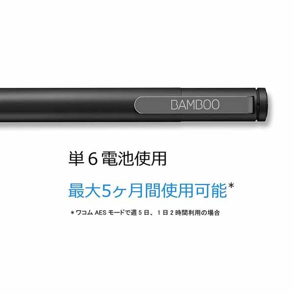 | 駆動時間 | ・ワコムAESモード利用時:約5ヶ月 ・MPPモード利用時:約2ヶ月(単6電池、週5日、1日2時間利用の場合) |