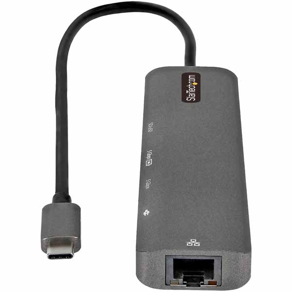DisplayPort 1.4対応USB-C接続マルチポートアダプタ。 4K/60Hz HDMIをサポートし、MacBook Pro、Dell XPSその他USB-C搭載ノートパソコン/タブレットを外出先でもフル機能環境として使えるソリューションです。4KのHDMI出力、USB 3.2 Gen 1 Type-Aポート(5Gbps)2口、ギガビットイーサネットポートのすべてをノートパソコンのUSB-C(またはThunderbolt 3)ポートに一括接続します。USB Power Delivery 3.0による最新の充電機能にも対応し、本体についた30cmのホストケーブルはリーチが長く、柔軟なセットアップが可能です。