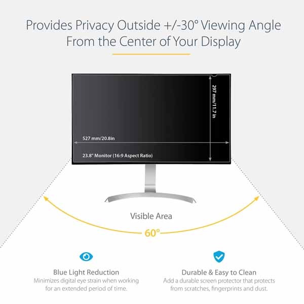 StarTech のぞき見防止プライバシーフィルター(16:9アスペクト比対応 光沢&つや消し加工面)|PRIVACY-SCREEN-238M
