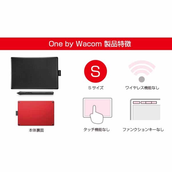 | 構成 | One by Wacom本体 Intuos 筆圧ペン(LP-190K) USBケーブル(1m) 替え芯(標準芯)3本 芯抜き クイックスタートガイド レギュレーションシート |