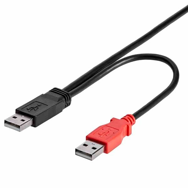 USBマイクロBオスコネクタをUSB-Aオスコネクタ2つに分岐するY型ケーブル(0.9m)。マイクロUSB端子の外付けドライブを標準USBポート接続する際、追加電力が必要となるケースに最適なソリューションです。