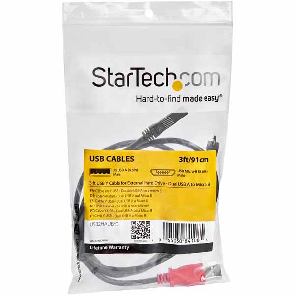 StarTech USB Y字給電ケーブル 91cm(USB A-Micro-B)外付けハードディスクに対応|USB2HAUBY3