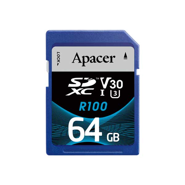 Apacer SDXC 容量64GB Class10 UHS-I U3 V30 R/W up to 100/80MB/s|AP64GSDXC10U7-R