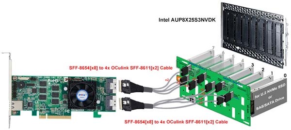 To Drives/Backplane:Two x4 SFF-8612 (OCuLink)