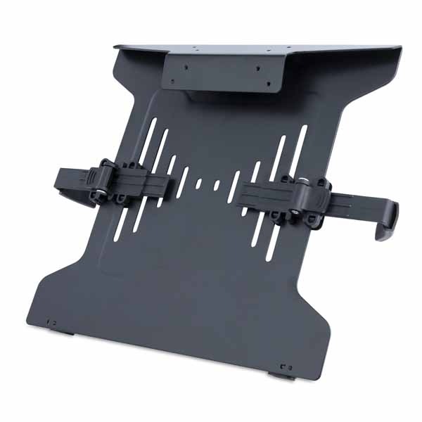 ・エルゴノミクス対応のノートPC台座:ノートパソコンを目線の位置に設定して首が疲れない姿勢を促進。シングルモニターアームに設置、または2画面対応のアームやデスクマウントと併用し、ディスプレイを横にならべて画面スペースを拡張