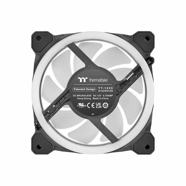 ファンの外周と軸受部分に、リング状に並んだ30個のアドレサブルRGB LEDを搭載。付属の専用コントローラーに接続して「TT RGB PLUS」ソフトウェアを使用することにより、LEDカラーの個別設定やプロファイルの作成、ファンスピードのコントロールが可能です。