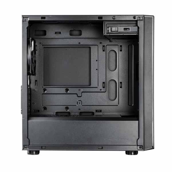 「Elite 300 TG」には強化ガラスサイドパネルを採用。PCケース内部はオールブラックでコーティングされており、パーツ類を引き立てます。強化ガラスサイドパネルは、自作PCならではの豊かなドレスアップを楽しめるデザインとなっています。