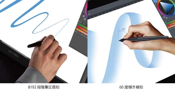 ・8192段階の筆圧感知、60度の傾き検知に対応