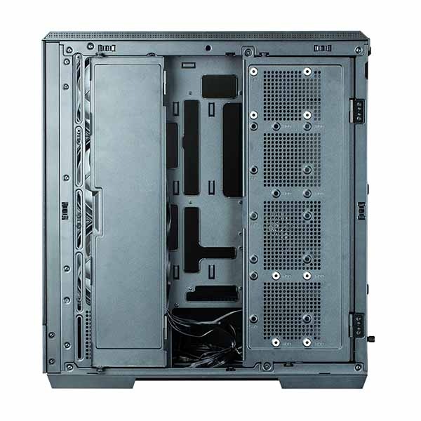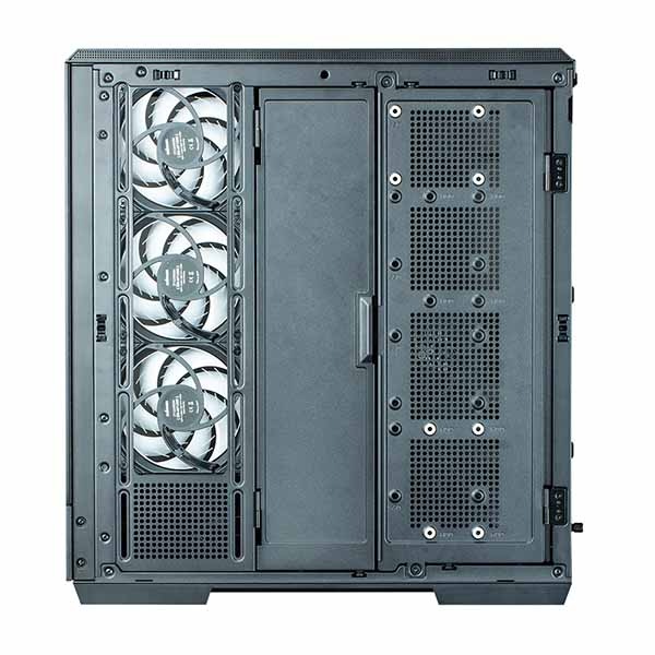 側面には、リバースブレードのアドレサブルRGBファンを3基搭載。右サイドパネルには通気孔を備えており、優れたエアフローを実現します。