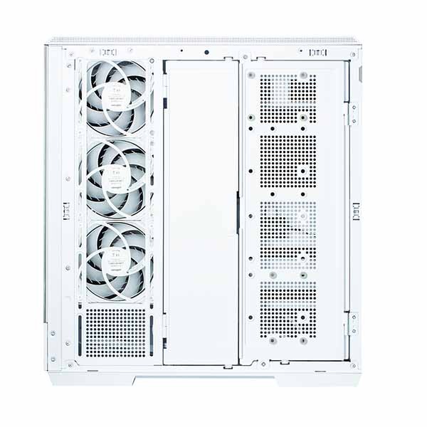 側面には、リバースブレードのアドレサブルRGBファンを3基搭載。右サイドパネルには通気孔を備えており、優れたエアフローを実現します。