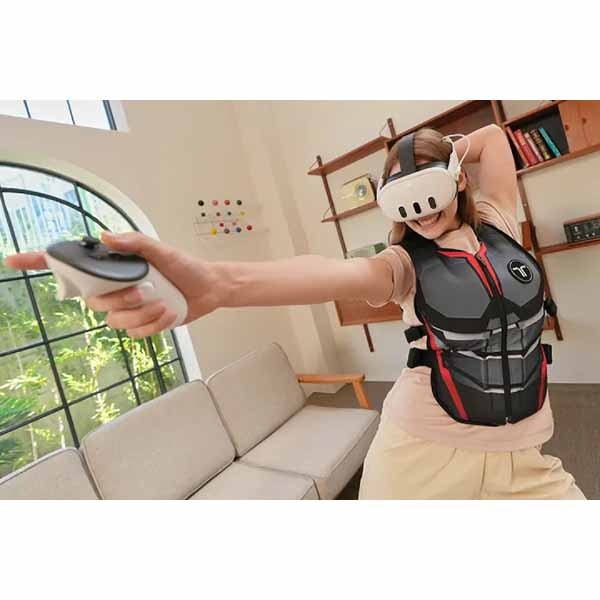 自由な動きを実現する柔軟で軽量な16モーターの触覚スーツ。