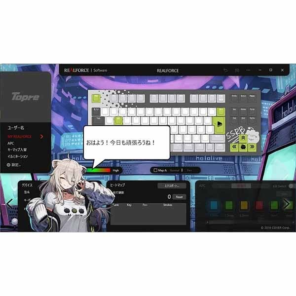 ・ホロライブ 獅白ぼたん コラボモデル:ホロライブメンバーとコラボしたゲーミングキーボード「Realforce × hololive GX1 Keyboard 獅白ぼたん モデル」が登場。コラボイラストを使用したアクリルスタンドも付属しています。