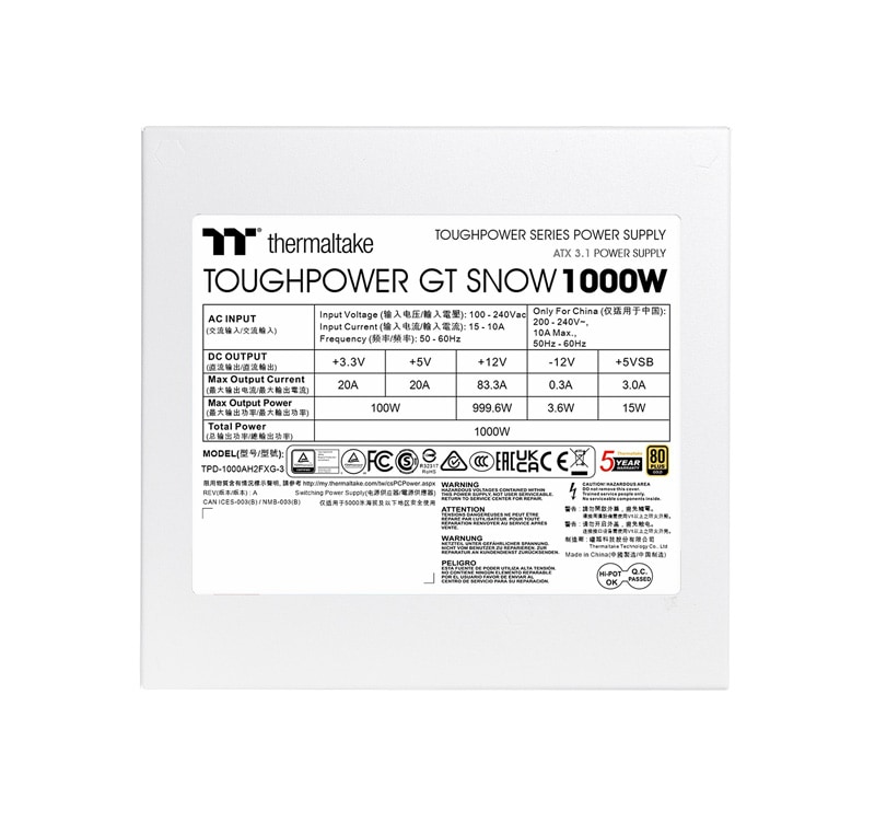 Thermaltake TOUGHPOWER GT/1000W ATX 3.1 Snow/PCI Express 5.1対応 80PLUS GOLD PC電源ユニット ホワイト|PS-TPT-1000FNFAGJ-W