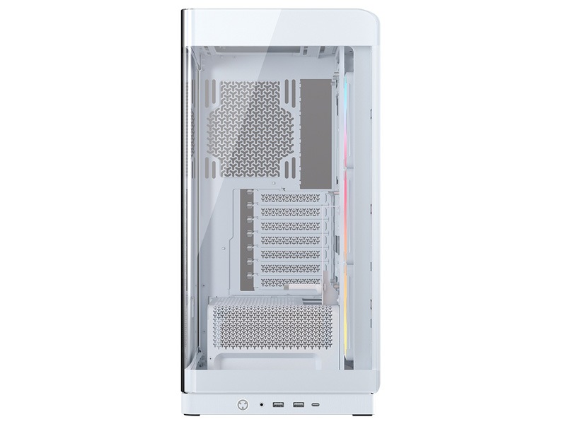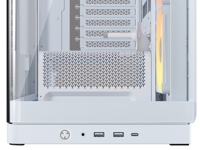 フロントから左サイドにかけて曲面強化ガラスパネルを備えたピラーレス構造を採用。背面コネクタ設計のMSI、GIGABYTE、ASUS社製マザーボードに対応しており、自作PCならではの豊かなドレスアップを楽しめます。