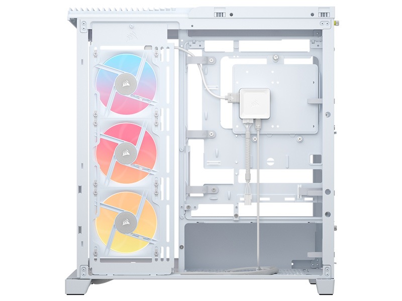 レールをスライドさせるだけで、ファンを柔軟なレイアウトで取り付けできる「InfiniRailシステム」を搭載。iCUE LINKに対応するリバースローター設計の「iCUE LINK LX120-R RGB」ファンを標準装備するほか、トップとサイドには最大360mmサイズの水冷ラジエーターが搭載可能となっており、豊富な冷却オプションに対応しています。