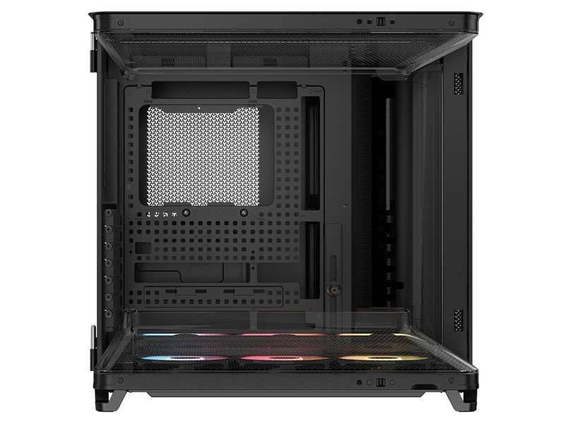 ・背面コネクタマザーボード対応:ASUS、MSI、Gigabyteなどの背面コネクタマザーボードに対応。チャンバー間に配置された新しい垂直の配線通路構造により、配線をすっきり整理可能です。
