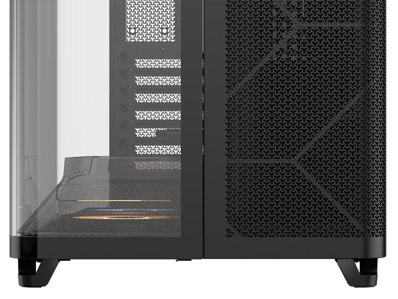 ・曲面強化ガラスパネル:側面から前面へと続く曲面ガラスが、さまざまな角度から内部パーツを美しく見せ、外観の美しさとメンテナンス性を兼ね備えています。